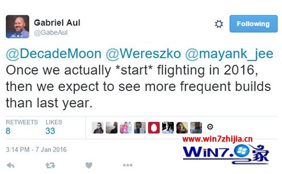 windows insider项目负责人Gabriel Aul在Twitter上表示,win10 Mobile和windows10 pC多个版本已经在微软内部测试中,因此推测最快下周进行win10 Redstone新预览版推送。