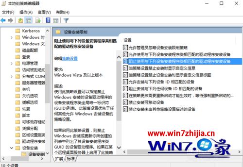 7、依次打开:计算机配置-管理模版-系统-设备安装--设备安装限制 ,最后页面如下图所示;
