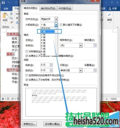1、打开Word,选中里面的内容,先设置好大纲层次,如图所示