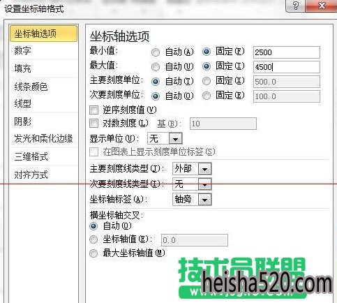 7、设计坐标轴。为了强化逐渐增加的趋势,可以将纵坐标轴的最大和最小刻度进行更改。因为已经显示出了数据标签,所以没必要再需要纵坐标轴,点击选择纵坐标轴,将其删除。点选横坐标轴,更改字体和字号。